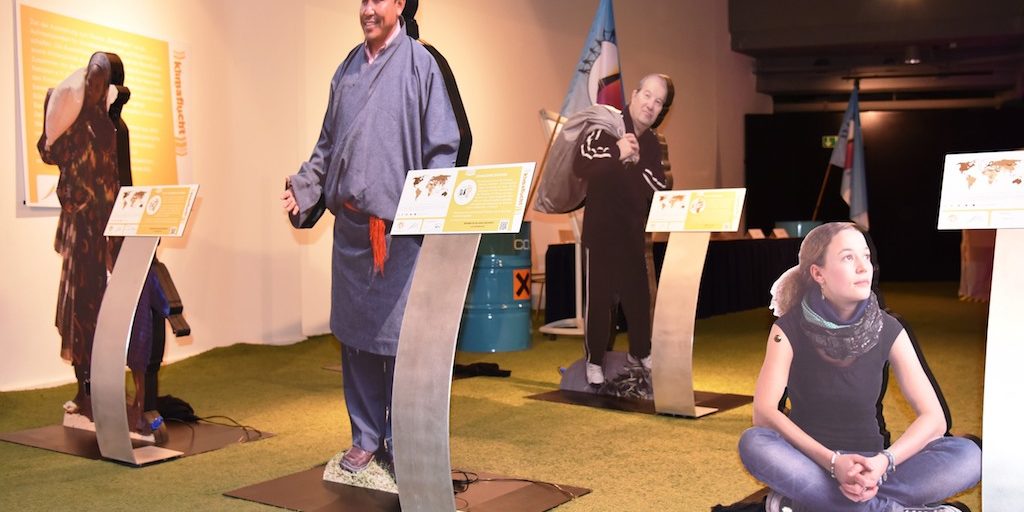 Welche Auswirkungen hat die globale Erderwärmung auf die Fischer in Mekong-Delta? Welche Sorgen haben die Olivenbauern in Griechenland? Zwölf lebensgroße Figuren erzählen in Audiobeiträgen über ihre Schicksale, Sorgen und wie der Klimawandel sich auf ihr Leben auswirkt. Diese zwölf realen Geschichten stehen für Menschen aus allen Teilen der Welt. Zum Beispiel die Geschichte der Frau aus Somalia, der es durch die Dürren im Land immer schwerer fällt, Wasser zu finden. Oder die Geschichte der Schülerin aus Kiribati, die fürchtet, dass ihre Heimat durch den steigenden Meeresspiegel verschwinden wird.