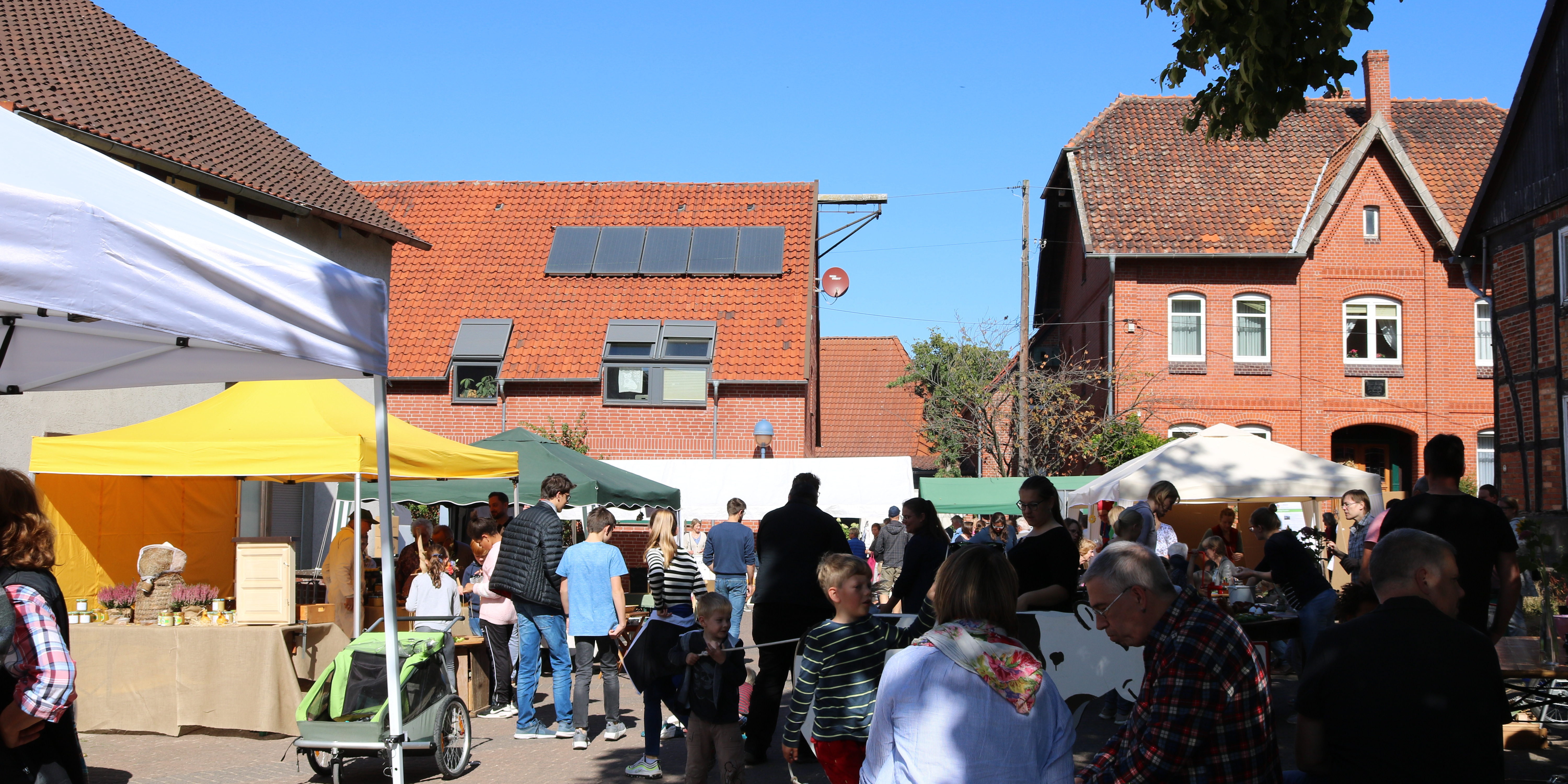 Am Samstag, dem 21.09.2019 war es so weit: Im Rahmen von GutKlima hatte der Dorfladen Bolzum, gemeinsam mit vielen engagierten Bürger*innen aus Bolzum und Wehmingen, zum Klimafest eingeladen. Bei spätsommerlichen Temperaturen wurden auf dem Platz rund um den Dorfladen viele Stände aufgebaut, die alle etwas mit gutem Klima zu tun haben. Die Besucher*innen konnten sich über den Fortschritt des Projekts „GutKlima“ sowie über klimafreundliches Verhalten im Alltag informieren. Anne Kessel von der Stadt Sehnde sowie Frauke Lehrke und Sandra Feldmann vom Dorfladen Bolzum standen für Informationen zur Verfügung und tauschten sich mit vielen Interessierten über das Verbundprojekt aus. Dabei konnten die Besucher*innen die bestehenden Bürgerprojekte begutachten, aber auch ihre eigene Visionen „spinnen“ und auf kleinen Zetteln notieren, wie sie sich ihr Dorf im Jahr 2030 vorstellen.